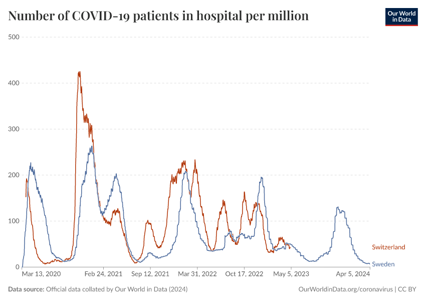 Official data collated by Our World in Data (2024) – processed by Our World in Data. “Number of COVID-19 patients in hospital per million” [dataset]. Official data collated by Our World in Data, “COVID-19, hospitalisations” [original data]. Retrieved April 17, 2026 from https://archive.ourworldindata.org/20260304-094028/grapher/current-covid-hospitalizations-per-million.html (archived on March 4, 2026).Download