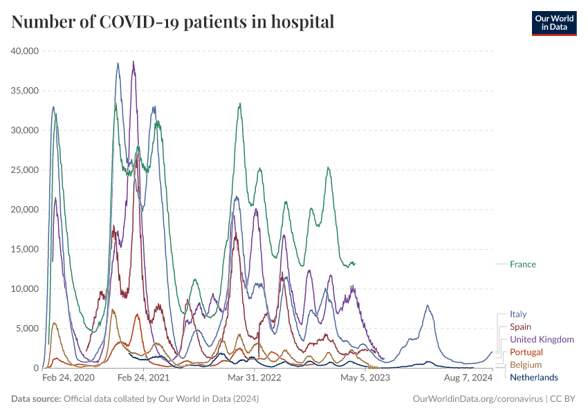 Official data collated by Our World in Data (2024) – processed by Our World in Data. “Number of COVID-19 patients in hospital” [dataset]. Official data collated by Our World in Data, “COVID-19, hospitalisations” [original data]. Retrieved December 7, 2025 from https://archive.ourworldindata.org/20250909-093708/grapher/current-covid-patients-hospital.html (archived on September 9, 2025).