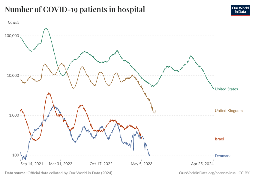Official data collated by Our World in Data (2024) – processed by Our World in Data. “Number of COVID-19 patients in hospital” [dataset]. Official data collated by Our World in Data, “COVID-19, hospitalisations” [original data]. Retrieved January 1, 2026 from https://archive.ourworldindata.org/20250909-093708/grapher/current-covid-patients-hospital.html (archived on September 9, 2025).