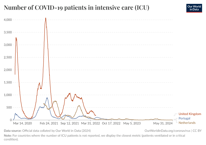 Official data collated by Our World in Data (2024) – processed by Our World in Data. “Number of COVID-19 patients in intensive care (ICU)” [dataset]. Official data collated by Our World in Data, “COVID-19, hospitalisations” [original data]. Retrieved December 24, 2025 from https://archive.ourworldindata.org/20250909-093708/grapher/current-covid-patients-icu.html (archived on September 9, 2025).