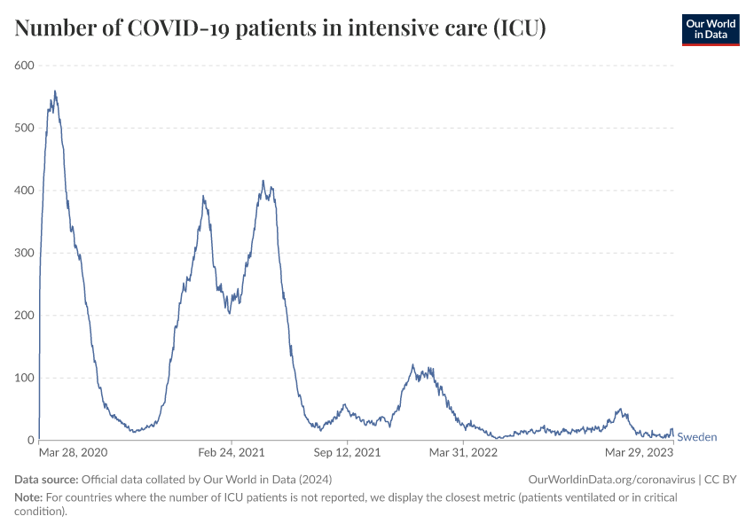 Official data collated by Our World in Data (2024) – processed by Our World in Data. “Number of COVID-19 patients in intensive care (ICU)” [dataset]. Official data collated by Our World in Data, “COVID-19, hospitalisations” [original data]. Retrieved April 3, 2026 from https://archive.ourworldindata.org/20260304-094028/grapher/current-covid-patients-icu.html (archived on March 4, 2026).
