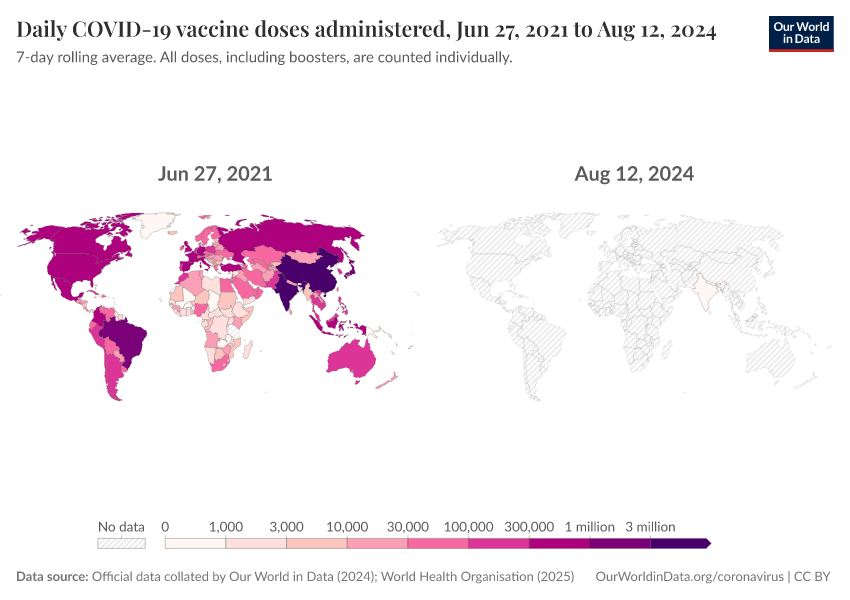 Official data collated by Our World in Data (2024); World Health Organisation (2025) – with major processing by Our World in Data. “Daily COVID-19 vaccine doses administered” [dataset]. Official data collated by Our World in Data, “COVID-19, vaccinations”; World Health Organisation, “COVID-19, vaccinations (WHO)” [original data]. Retrieved February 9, 2026 from https://archive.ourworldindata.org/20260119-065148/grapher/daily-covid-19-vaccination-doses.html (archived on January 19, 2026).