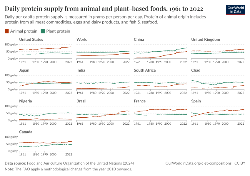 Daily protein supply from animal and plant-based foods