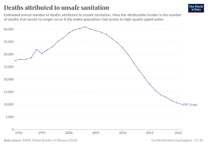 “Data Page: Deaths attributed to unsafe sanitation”, part of the following publication: Esteban Ortiz-Ospina and Max Roser (2016) - “Global Health”. Data adapted from IHME, Global Burden of Disease. Retrieved from https://archive.ourworldindata.org/20250909-093708/grapher/deaths-due-to-unsafe-sanitation.html [online resource] (archived on September 9, 2025).