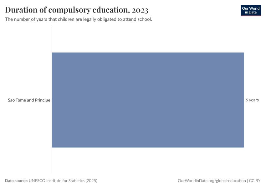 UNESCO Institute for Statistics (2025) – with minor processing by Our World in Data. “Duration of compulsory education” [dataset]. UNESCO Institute for Statistics, “UNESCO Institute for Statistics (UIS) - Education” [original data]. Retrieved December 21, 2025 from https://archive.ourworldindata.org/20250909-093708/grapher/duration-of-compulsory-education.html (archived on September 9, 2025).