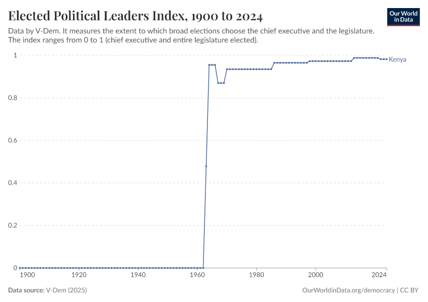 “Data Page: Elected officials index”, part of the following publication: Bastian Herre, Lucas Rodés-Guirao, and Esteban Ortiz-Ospina (2013) - “Democracy”. Data adapted from V-Dem. Retrieved from https://archive.ourworldindata.org/20260105-133053/grapher/elected-political-leaders-index.html [online resource] (archived on January 5, 2026).
