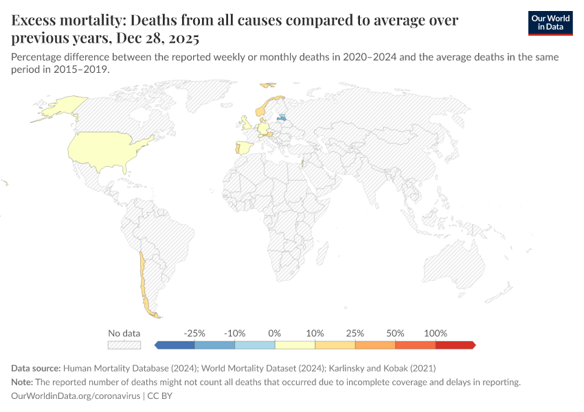 “Data Page: Excess mortality: Deaths from all causes compared to average over previous years”. Our World in Data (2026). Data adapted from Human Mortality Database, World Mortality Database. Retrieved from https://archive.ourworldindata.org/20260126-094752/grapher/excess-mortality-p-scores-average-baseline.html [online resource] (archived on January 26, 2026).How to cite this data