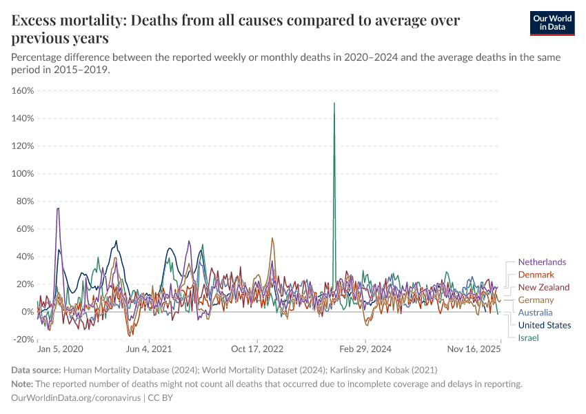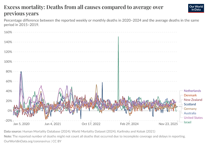 “Data Page: Excess mortality: Deaths from all causes compared to average over previous years”. Our World in Data (2025). Data adapted from Human Mortality Database, World Mortality Database. Retrieved from https://archive.ourworldindata.org/20251205-063407/grapher/excess-mortality-p-scores-average-baseline.html [online resource] (archived on December 5, 2025).