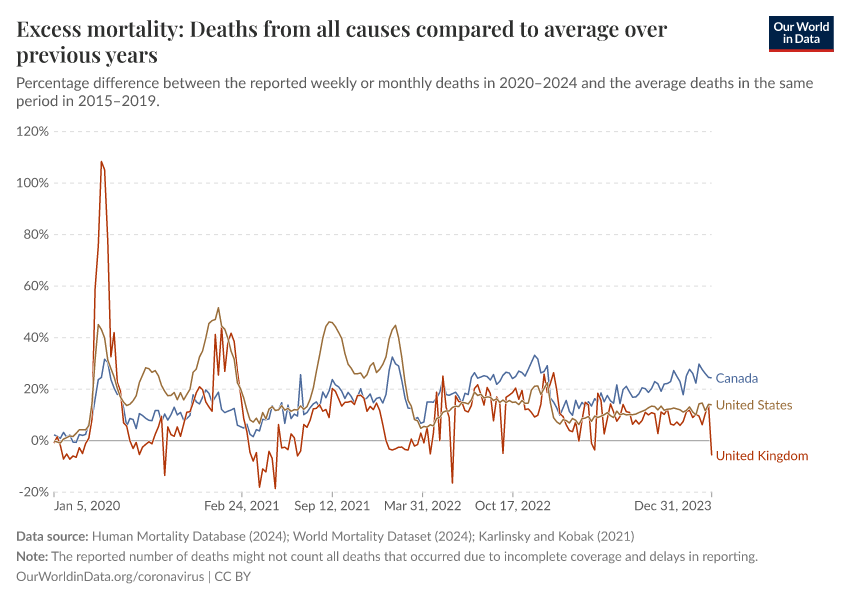 “Data Page: Excess mortality: Deaths from all causes compared to average over previous years”. Our World in Data (2026). Data adapted from Human Mortality Database, World Mortality Database. Retrieved from https://archive.ourworldindata.org/20260405-063255/grapher/excess-mortality-p-scores-average-baseline.html [online resource] (archived on April 5, 2026).How to cite this data