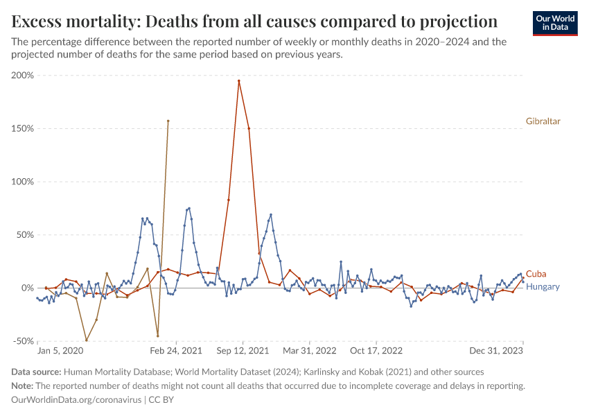 “Data Page: Excess mortality: Deaths from all causes compared to projection”. Our World in Data (2026). Data adapted from Human Mortality Database, World Mortality Database, Karlinsky & Kobak. Retrieved from https://archive.ourworldindata.org/20260402-063304/grapher/excess-mortality-p-scores-projected-baseline.html [online resource] (archived on April 2, 2026).