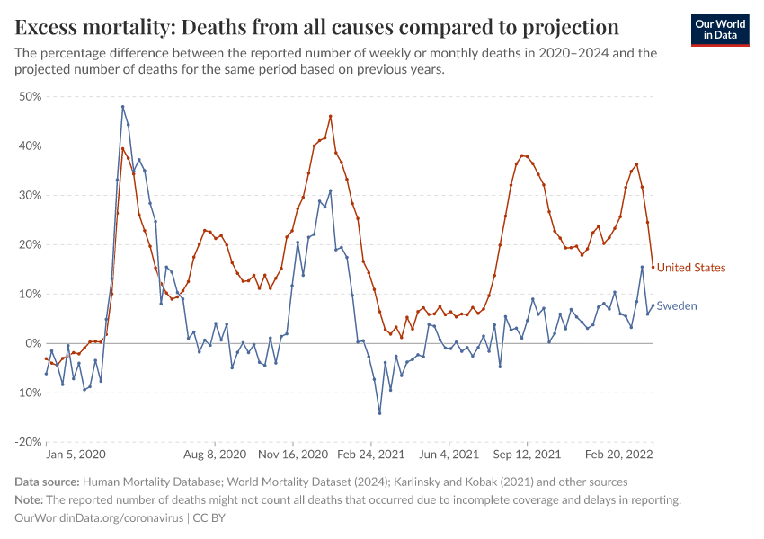 “Data Page: Excess mortality: Deaths from all causes compared to projection”. Our World in Data (2025). Data adapted from Human Mortality Database, World Mortality Database, Karlinsky & Kobak. Retrieved from https://archive.ourworldindata.org/20251216-063335/grapher/excess-mortality-p-scores-projected-baseline.html [online resource] (archived on December 16, 2025).How to cite this data