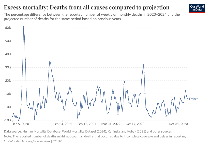 “Data Page: Excess mortality: Deaths from all causes compared to projection”. Our World in Data (2025). Data adapted from Human Mortality Database, World Mortality Database, Karlinsky & Kobak. Retrieved from https://archive.ourworldindata.org/20251219-063428/grapher/excess-mortality-p-scores-projected-baseline.html [online resource] (archived on December 19, 2025).