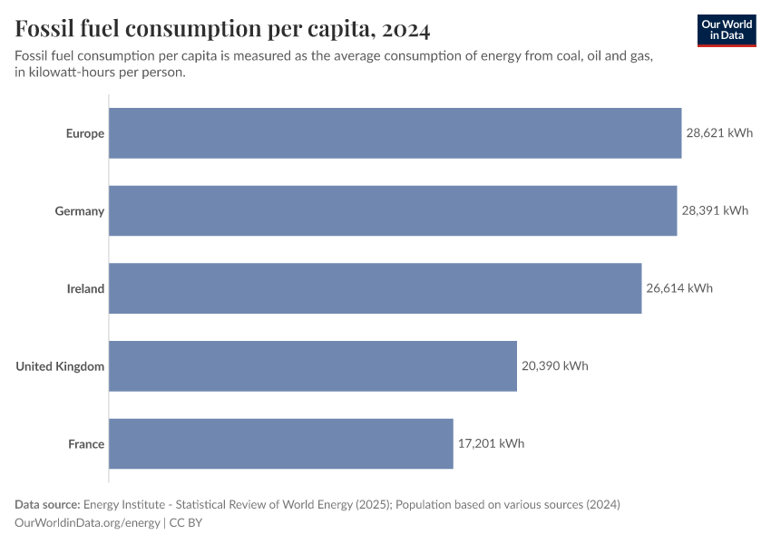“Data Page: Fossil fuel consumption per capita”, part of the following publication: Hannah Ritchie, Pablo Rosado, and Max Roser (2023) - “Energy”. Data adapted from Energy Institute, Various sources. Retrieved from https://archive.ourworldindata.org/20251204-144539/grapher/fossil-fuels-per-capita.html [online resource] (archived on December 4, 2025).