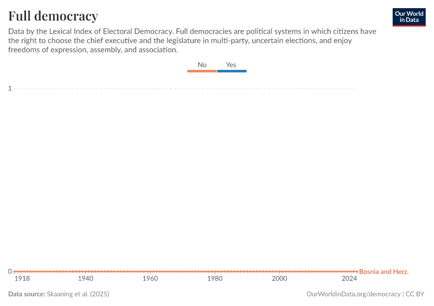 “Data Page: Full democracy”, part of the following publication: Bastian Herre, Lucas Rodés-Guirao, and Esteban Ortiz-Ospina (2013) - “Democracy”. Data adapted from Skaaning et al.. Retrieved from https://archive.ourworldindata.org/20250909-093708/grapher/full-democracy-lexical.html [online resource] (archived on September 9, 2025).