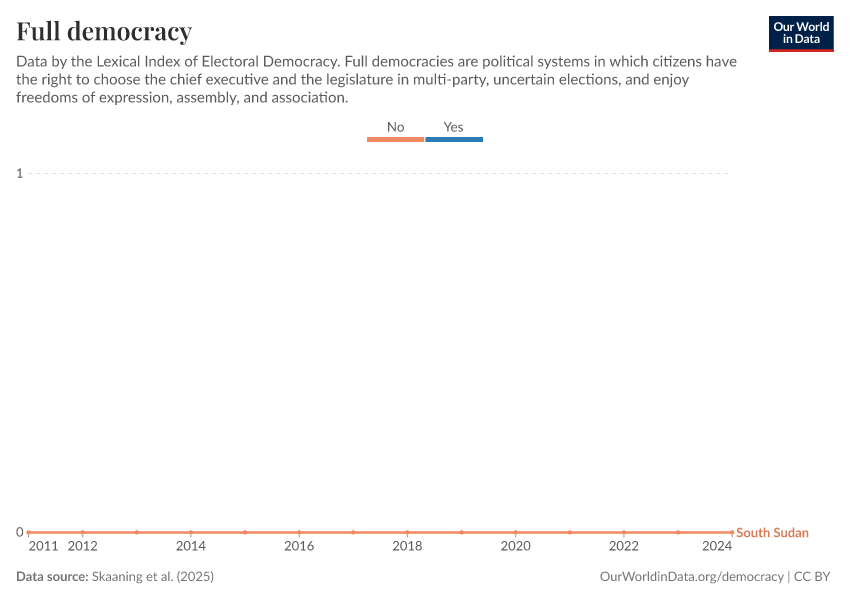 “Data Page: Full democracy”, part of the following publication: Bastian Herre, Lucas Rodés-Guirao, and Esteban Ortiz-Ospina (2013) - “Democracy”. Data adapted from Skaaning et al.. Retrieved from https://archive.ourworldindata.org/20250909-093708/grapher/full-democracy-lexical.html [online resource] (archived on September 9, 2025).How to cite this data