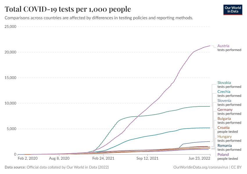Official data collated by Our World in Data (2022) – with major processing by Our World in Data. “Total COVID-19 tests per 1,000 people” [dataset]. Official data collated by Our World in Data, “COVID-19, testing” [original data]. Retrieved December 13, 2025 from https://archive.ourworldindata.org/20250909-093708/grapher/full-list-cumulative-total-tests-per-thousand.html (archived on September 9, 2025).