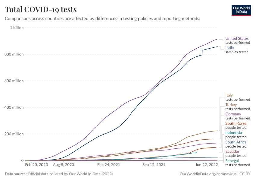 Official data collated by Our World in Data (2022) – with major processing by Our World in Data. “Total COVID-19 tests” [dataset]. Official data collated by Our World in Data, “COVID-19, testing” [original data]. Retrieved December 5, 2025 from https://archive.ourworldindata.org/20250909-093708/grapher/full-list-total-tests-for-covid-19.html (archived on September 9, 2025).