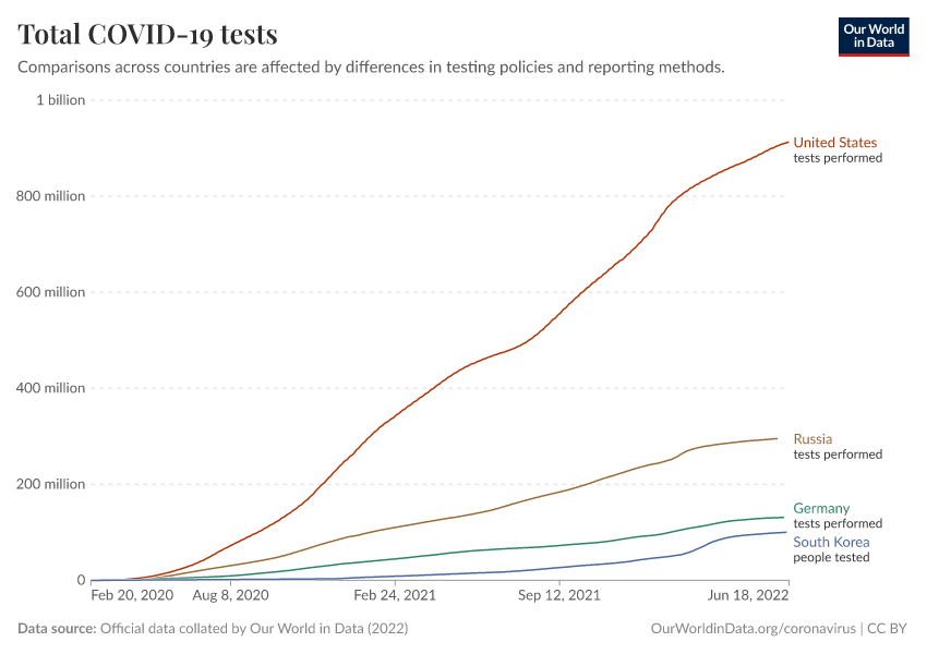 Official data collated by Our World in Data (2022) – with major processing by Our World in Data. “Total COVID-19 tests” [dataset]. Official data collated by Our World in Data, “COVID-19, testing” [original data]. Retrieved December 22, 2025 from https://archive.ourworldindata.org/20250909-093708/grapher/full-list-total-tests-for-covid-19.html (archived on September 9, 2025).