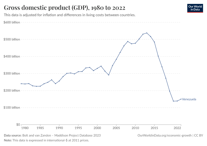 “Data Page: Gross domestic product (GDP)”, part of the following publication: Max Roser, Bertha Rohenkohl, Pablo Arriagada, Joe Hasell, Hannah Ritchie, and Esteban Ortiz-Ospina (2023) - “Economic Growth”. Data adapted from Bolt and van Zanden. Retrieved from https://archive.ourworldindata.org/20260105-133053/grapher/gdp-maddison-project-database.html [online resource] (archived on January 5, 2026).How to cite this data