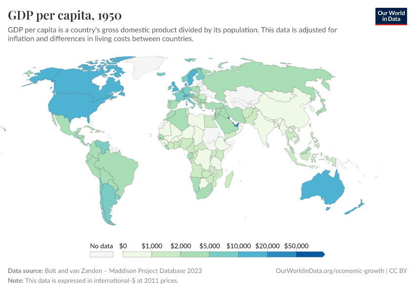“Data Page: GDP per capita”, part of the following publication: Max Roser, Bertha Rohenkohl, Pablo Arriagada, Joe Hasell, Hannah Ritchie, and Esteban Ortiz-Ospina (2023) - “Economic Growth”. Data adapted from Bolt and van Zanden. Retrieved from https://archive.ourworldindata.org/20251111-144738/grapher/gdp-per-capita-maddison-project-database.html [online resource] (archived on November 11, 2025).