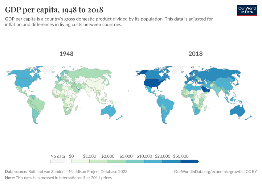 Bolt and van Zanden – Maddison Project Database 2023 – with minor processing by Our World in Data. “GDP per capita – Maddison Project Database – Long-run data in constant international-$” [dataset]. Bolt and van Zanden, “Maddison Project Database 2023” [original data]. Retrieved December 19, 2025 from https://archive.ourworldindata.org/20251111-144738/grapher/gdp-per-capita-maddison-project-database.html (archived on November 11, 2025).