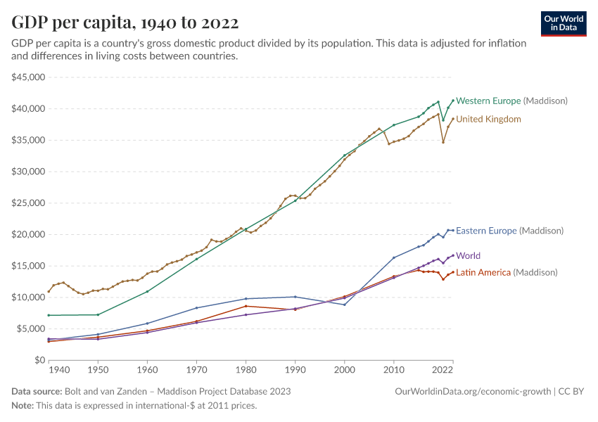 - For more frequently updated estimates since 1990, explore our chart of GDP per capita from the World Bank.