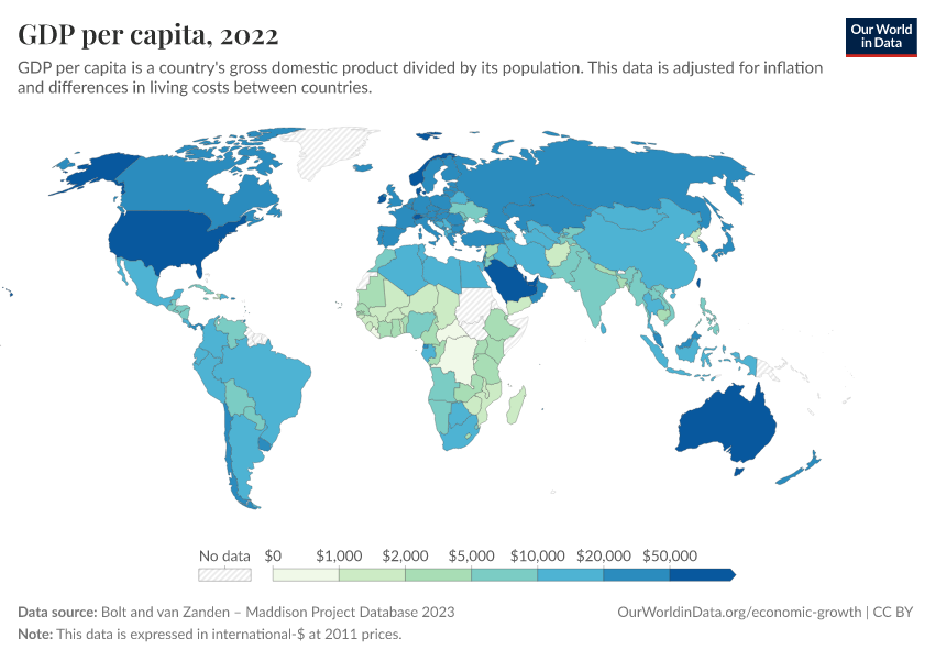 Bolt and van Zanden – Maddison Project Database 2023 – with minor processing by Our World in Data. “GDP per capita – Maddison Project Database – Long-run data in constant international-$” [dataset]. Bolt and van Zanden, “Maddison Project Database 2023” [original data]. Retrieved March 8, 2026 from https://archive.ourworldindata.org/20260304-094028/grapher/gdp-per-capita-maddison-project-database.html (archived on March 4, 2026).