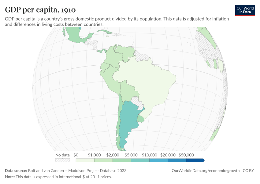 “Data Page: GDP per capita”, part of the following publication: Max Roser, Bertha Rohenkohl, Pablo Arriagada, Joe Hasell, Hannah Ritchie, and Esteban Ortiz-Ospina (2023) - “Economic Growth”. Data adapted from Bolt and van Zanden. Retrieved from https://archive.ourworldindata.org/20260410-215714/grapher/gdp-per-capita-maddison-project-database.html [online resource] (archived on April 10, 2026).How to cite this data