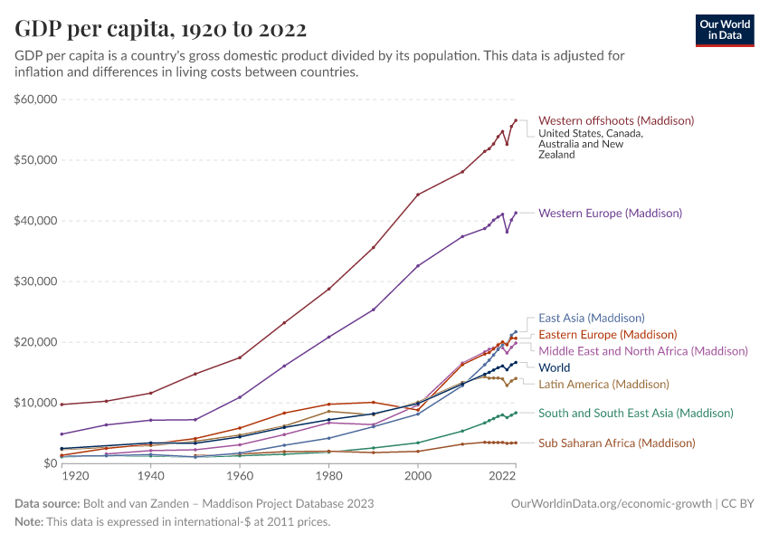 Bolt and van Zanden – Maddison Project Database 2023 – with minor processing by Our World in Data. “GDP per capita – Maddison Project Database – Long-run data in constant international-$” [dataset]. Bolt and van Zanden, “Maddison Project Database 2023” [original data]. Retrieved December 8, 2025 from https://archive.ourworldindata.org/20251111-144738/grapher/gdp-per-capita-maddison-project-database.html (archived on November 11, 2025).
