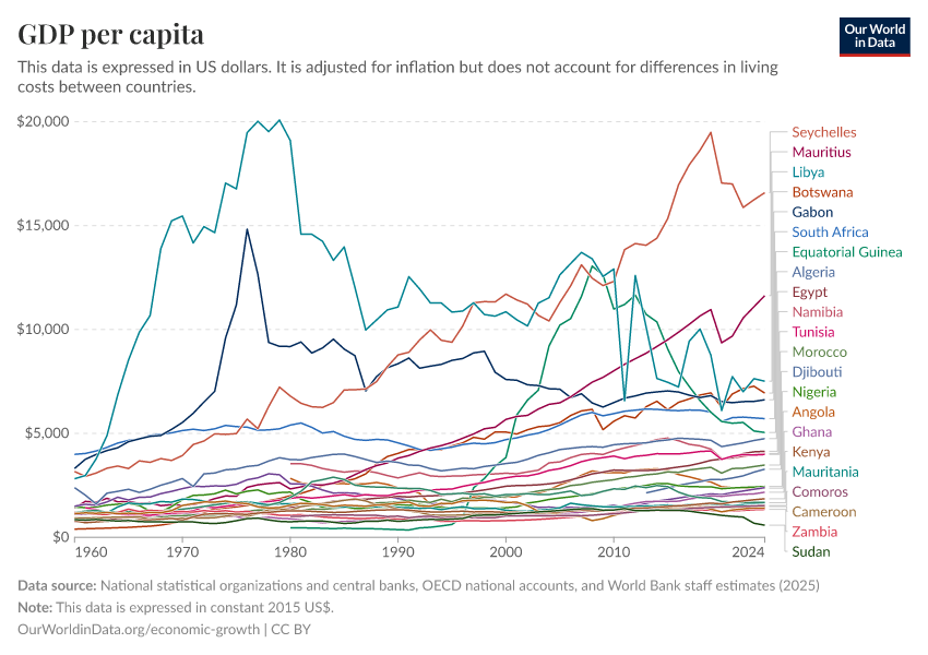 National statistical organizations and central banks, OECD national accounts, and World Bank staff estimates (2025) – with minor processing by Our World in Data. “GDP per capita – World Bank – In constant US$” [dataset]. National statistical organizations and central banks, OECD national accounts, and World Bank staff estimates, “World Development Indicators 122” [original data]. Retrieved December 9, 2025 from https://archive.ourworldindata.org/20251110-093020/grapher/gdp-per-capita-worldbank-constant-usd.html (archived on November 10, 2025).