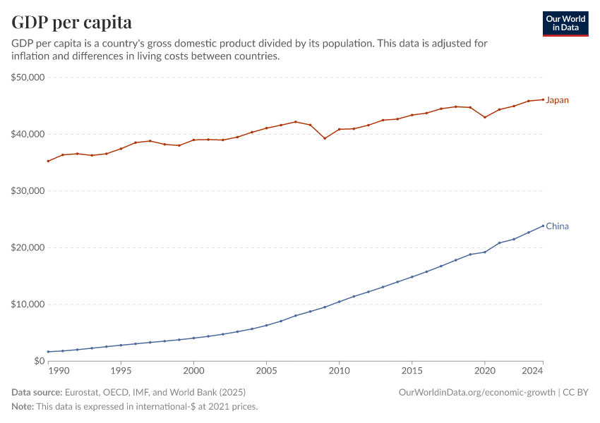 “Data Page: GDP per capita”, part of the following publication: Max Roser, Bertha Rohenkohl, Pablo Arriagada, Joe Hasell, Hannah Ritchie, and Esteban Ortiz-Ospina (2023) - “Economic Growth”. Data adapted from Eurostat, OECD, IMF, and World Bank. Retrieved from https://archive.ourworldindata.org/20251220-152415/grapher/gdp-per-capita-worldbank.html [online resource] (archived on December 20, 2025).