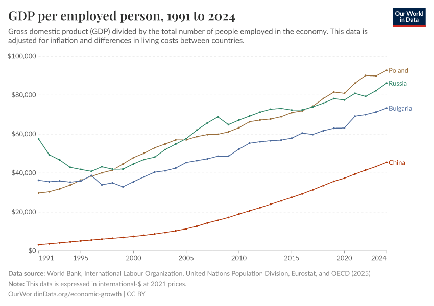“Data Page: GDP per employed person”. Our World in Data (2025). Data adapted from World Bank, International Labour Organization, United Nations Population Division, Eurostat, and OECD. Retrieved from https://archive.ourworldindata.org/20250916-102301/grapher/gdp-per-person-employed-constant-ppp.html [online resource] (archived on September 16, 2025).How to cite this data