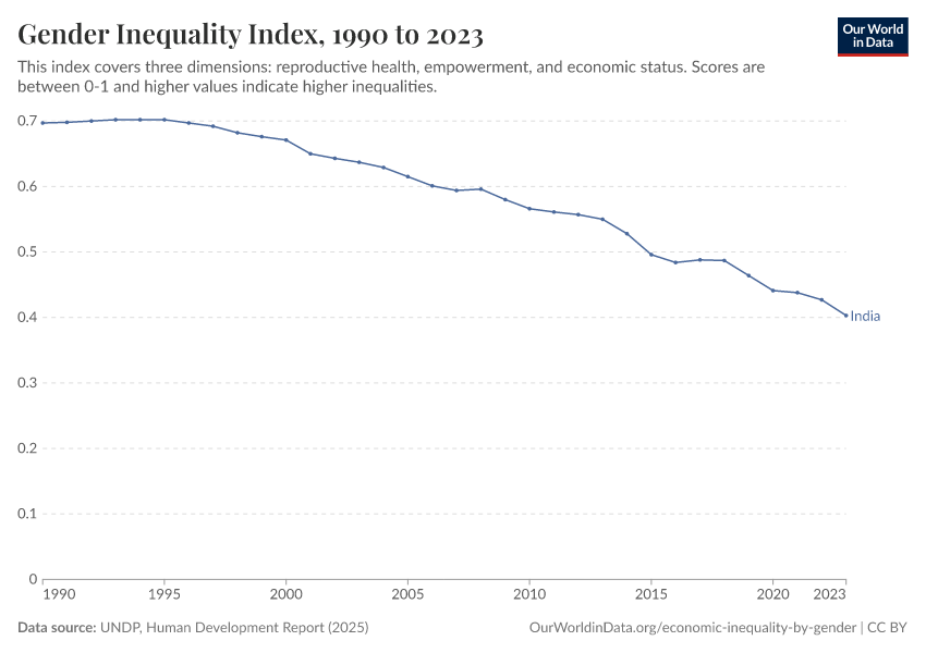 “Data Page: Gender Inequality Index”. Our World in Data (2026). Data adapted from UNDP, Human Development Report. Retrieved from https://archive.ourworldindata.org/20250909-093708/grapher/gender-inequality-index-from-the-human-development-report.html [online resource] (archived on September 9, 2025).How to cite this data