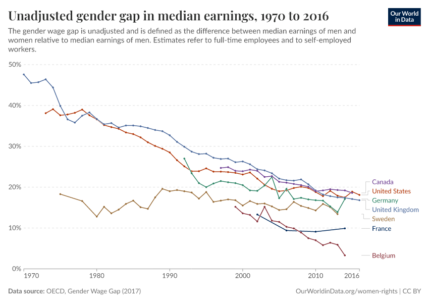 Unadjusted gender gap in median earnings