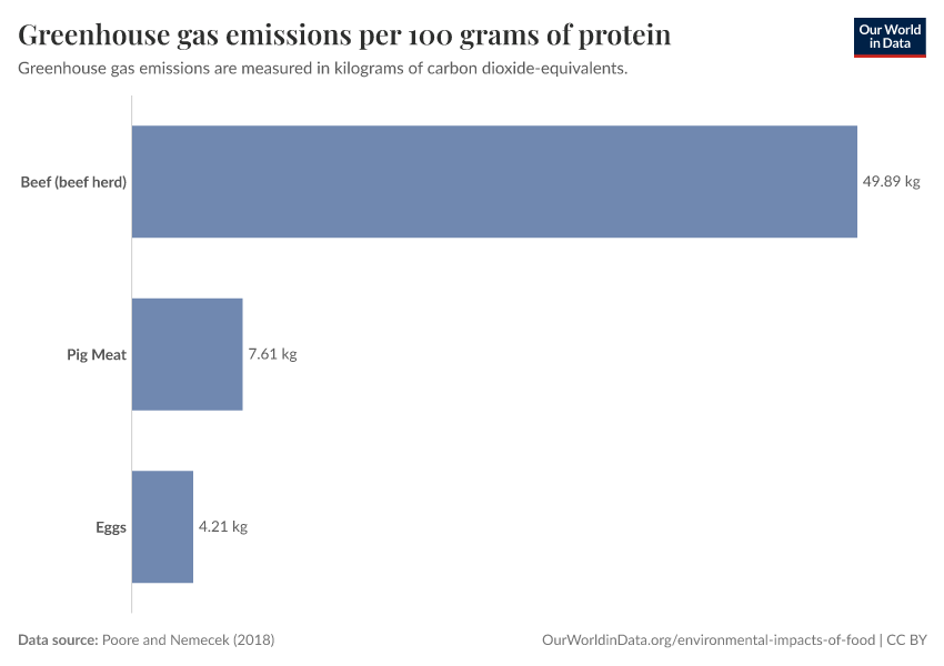 - Land use per 100 grams of protein