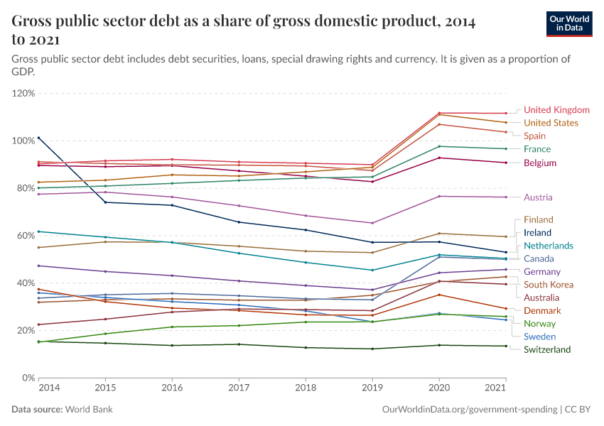 “Data Page: Gross public sector debt as a share of gross domestic product”. Our World in Data (2026). Data adapted from World Bank. Retrieved from https://archive.ourworldindata.org/20251120-211749/grapher/gross-public-sector-debt-as-a-proportion-of-gdp.html [online resource] (archived on November 20, 2025).How to cite this data