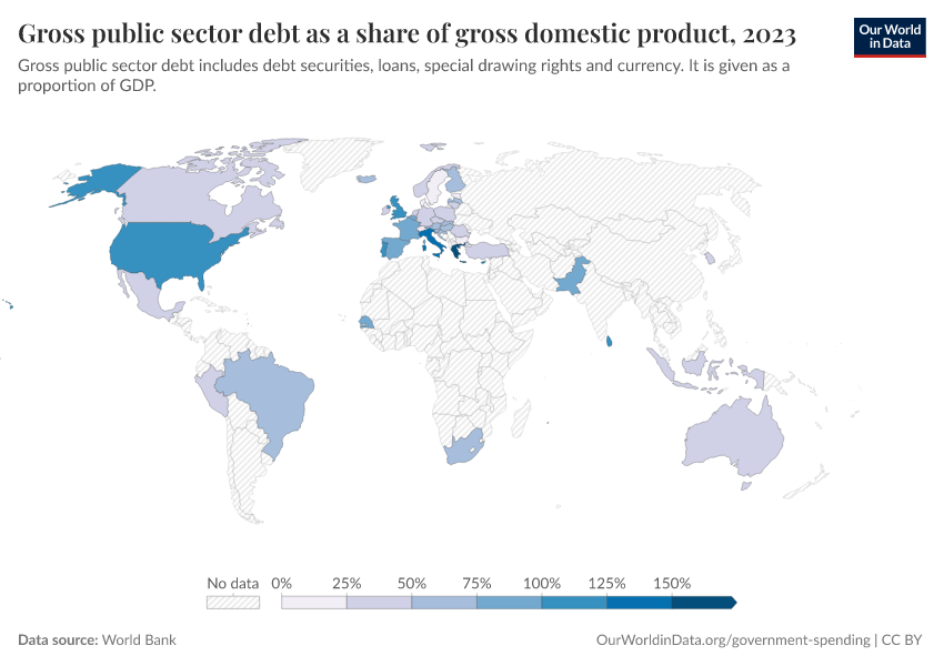 “Data Page: Gross public sector debt as a share of gross domestic product”. Our World in Data (2026). Data adapted from World Bank. Retrieved from https://archive.ourworldindata.org/20260304-094028/grapher/gross-public-sector-debt-as-a-proportion-of-gdp.html [online resource] (archived on March 4, 2026).How to cite this data
