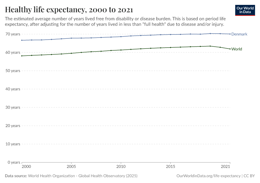 “Data Page: Healthy life expectancy”. Our World in Data (2025). Data adapted from World Health Organization. Retrieved from https://archive.ourworldindata.org/20250909-093708/grapher/healthy-life-expectancy-at-birth.html [online resource] (archived on September 9, 2025).How to cite this data