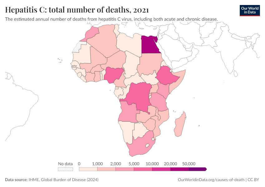 “Data Page: Hepatitis C: total number of deaths”, part of the following publication: Esteban Ortiz-Ospina and Max Roser (2016) - “Global Health”. Data adapted from IHME, Global Burden of Disease. Retrieved from https://archive.ourworldindata.org/20250909-093708/grapher/hepatitis-c-number-of-deaths.html [online resource] (archived on September 9, 2025).How to cite this data