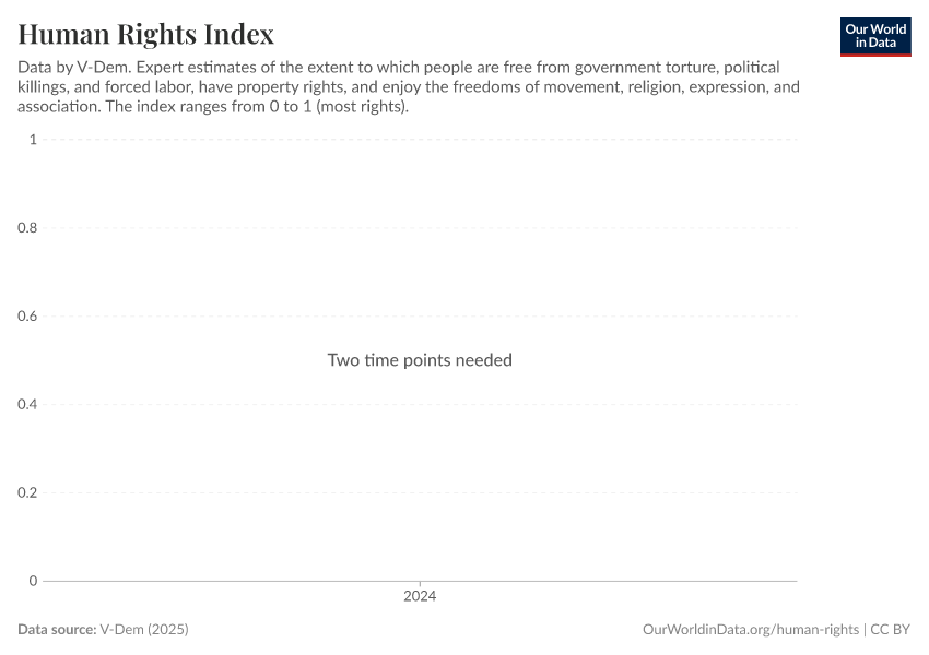 “Data Page: Human rights index”, part of the following publication: Bastian Herre, Lucas Rodés-Guirao, and Esteban Ortiz-Ospina (2013) - “Democracy”. Data adapted from V-Dem. Retrieved from https://archive.ourworldindata.org/20251127-173406/grapher/human-rights-index-vdem.html [online resource] (archived on November 27, 2025).How to cite this data