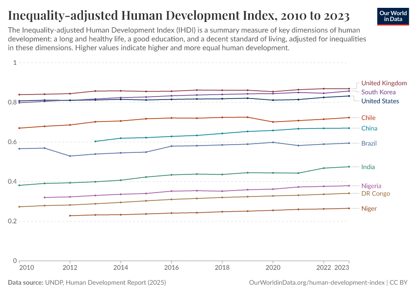 “Data Page: Inequality-adjusted Human Development Index”. Our World in Data (2026). Data adapted from UNDP, Human Development Report. Retrieved from https://archive.ourworldindata.org/20260119-065148/grapher/inequality-adjusted-human-development-index.html [online resource] (archived on January 19, 2026).How to cite this data