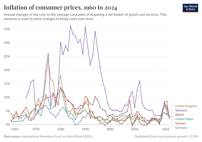“Data Page: Inflation of consumer prices”. Our World in Data (2025). Data adapted from International Monetary Fund, via World Bank. Retrieved from https://archive.ourworldindata.org/20250916-102301/grapher/inflation-of-consumer-prices.html [online resource] (archived on September 16, 2025).How to cite this data