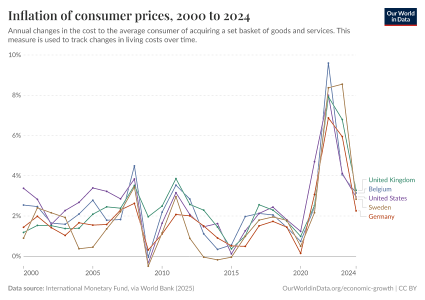 “Data Page: Inflation of consumer prices”. Our World in Data (2025). Data adapted from International Monetary Fund, via World Bank. Retrieved from https://archive.ourworldindata.org/20250916-102301/grapher/inflation-of-consumer-prices.html [online resource] (archived on September 16, 2025).How to cite this data