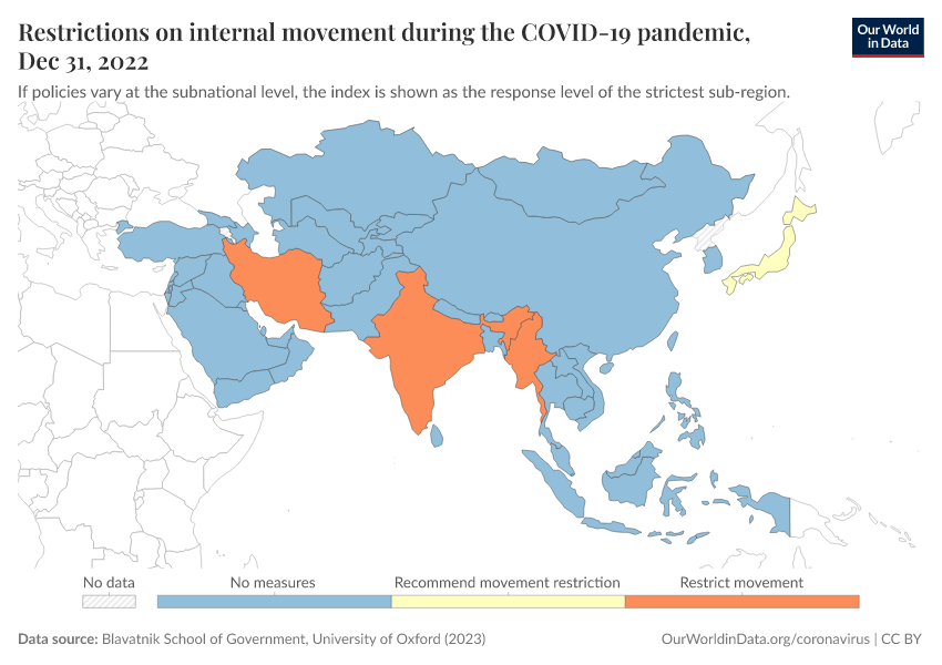 Blavatnik School of Government, University of Oxford (2023) – with minor processing by Our World in Data. “Restrictions on internal movement during the COVID-19 pandemic” [dataset]. Blavatnik School of Government, University of Oxford, “Government Response Tracker (OxCGRT)” [original data]. Retrieved January 15, 2026 from https://archive.ourworldindata.org/20250909-093708/grapher/internal-movement-covid.html (archived on September 9, 2025).