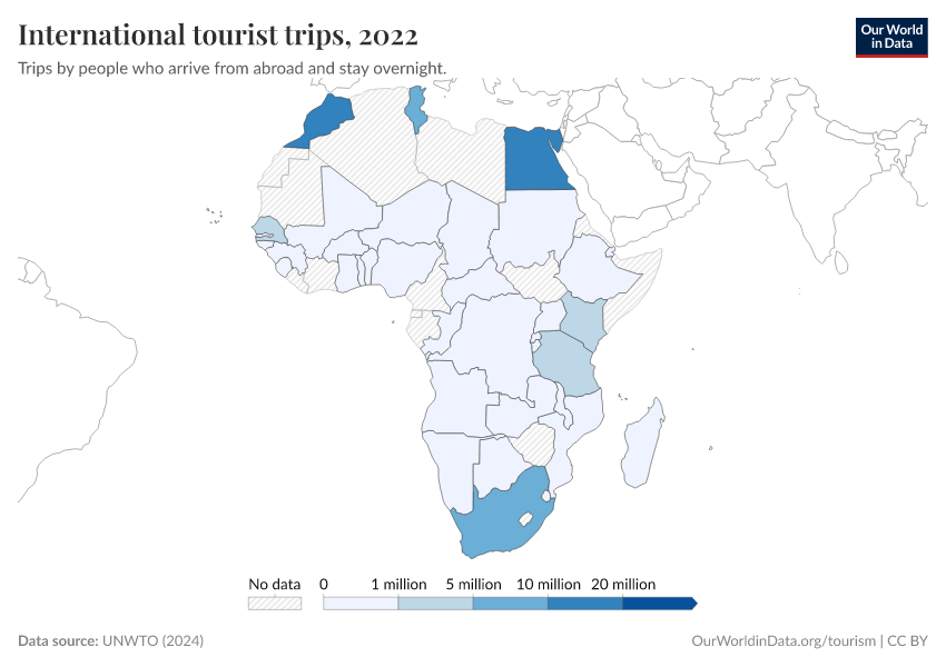 “Data Page: International tourist trips”, part of the following publication: Bastian Herre and Veronika Samborska (2023) - “Tourism”. Data adapted from UNWTO. Retrieved from https://archive.ourworldindata.org/20250909-093708/grapher/international-tourist-trips.html [online resource] (archived on September 9, 2025).