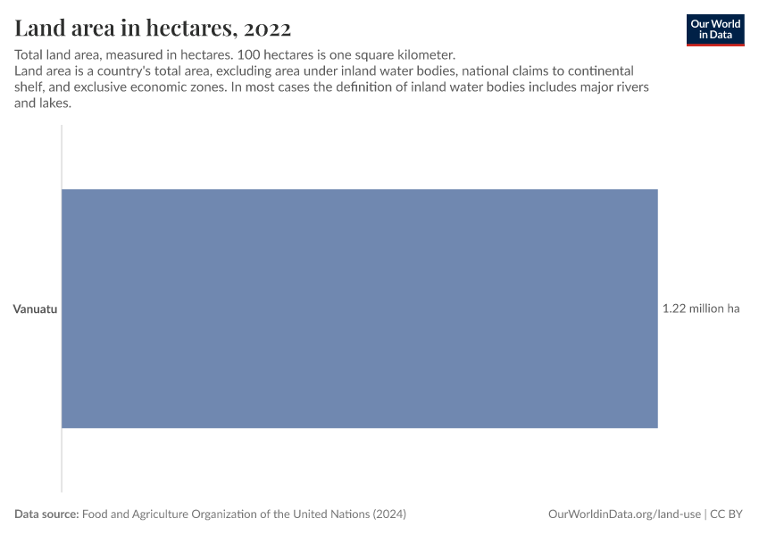 “Data Page: Land area in hectares”, part of the following publication: Hannah Ritchie, Pablo Rosado, and Max Roser (2023) - “Agricultural Production”. Data adapted from Food and Agriculture Organization of the United Nations. Retrieved from https://archive.ourworldindata.org/20251014-161652/grapher/land-area-hectares.html [online resource] (archived on October 14, 2025).