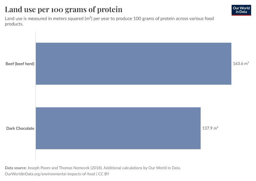 - Land use per kilogram of food product