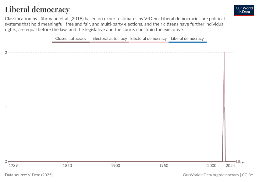 “Data Page: Liberal democracy”, part of the following publication: Bastian Herre, Lucas Rodés-Guirao, and Esteban Ortiz-Ospina (2013) - “Democracy”. Data adapted from V-Dem. Retrieved from https://archive.ourworldindata.org/20250909-093708/grapher/liberal-democracy-row.html [online resource] (archived on September 9, 2025).How to cite this data