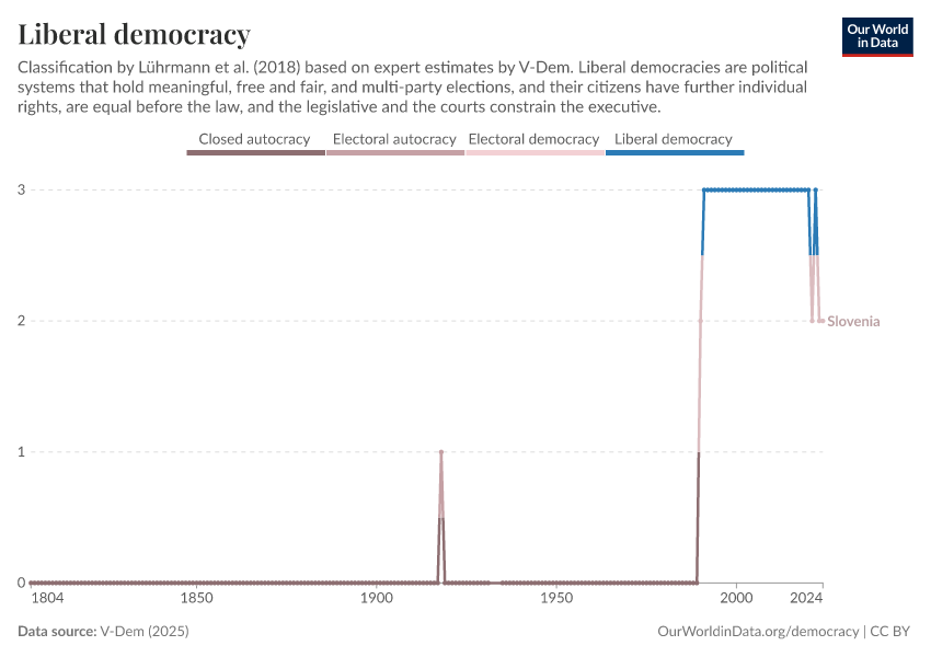 “Data Page: Liberal democracy”, part of the following publication: Bastian Herre, Lucas Rodés-Guirao, and Esteban Ortiz-Ospina (2013) - “Democracy”. Data adapted from V-Dem. Retrieved from https://archive.ourworldindata.org/20250909-093708/grapher/liberal-democracy-row.html [online resource] (archived on September 9, 2025).How to cite this data