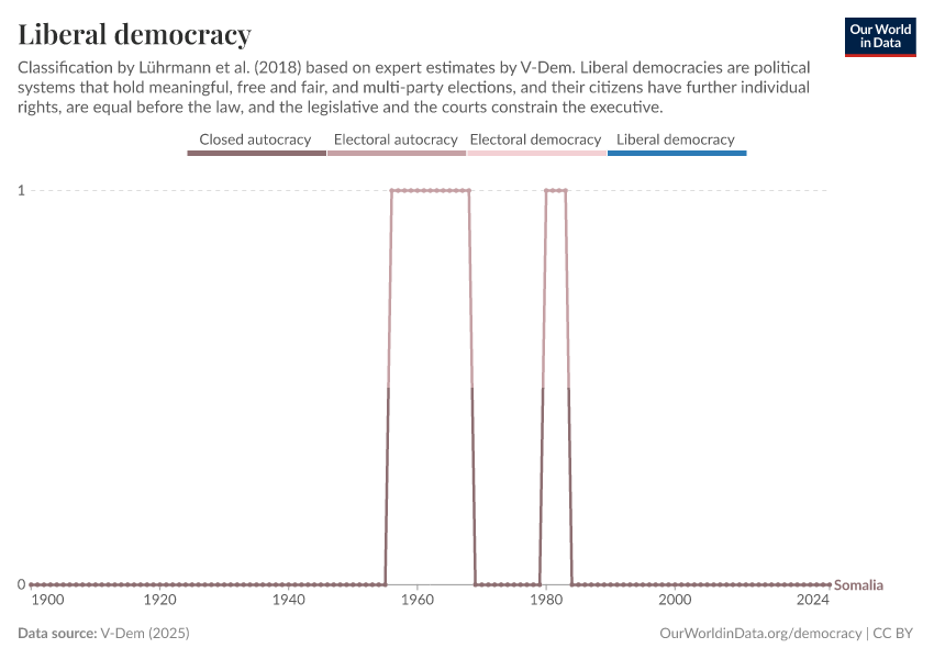 “Data Page: Liberal democracy”, part of the following publication: Bastian Herre, Lucas Rodés-Guirao, and Esteban Ortiz-Ospina (2013) - “Democracy”. Data adapted from V-Dem. Retrieved from https://archive.ourworldindata.org/20250909-093708/grapher/liberal-democracy-row.html [online resource] (archived on September 9, 2025).How to cite this data